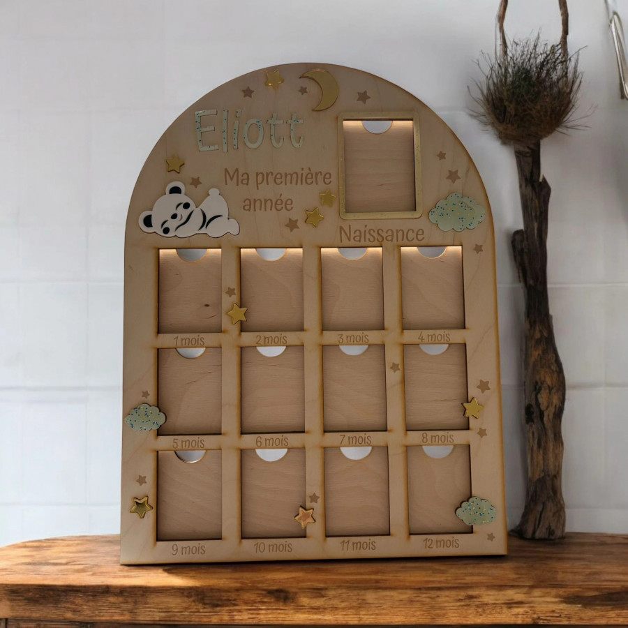 Capturez chaque précieux moment de la première année de votre bébé avec ce cadre photo personnalisé en bois.