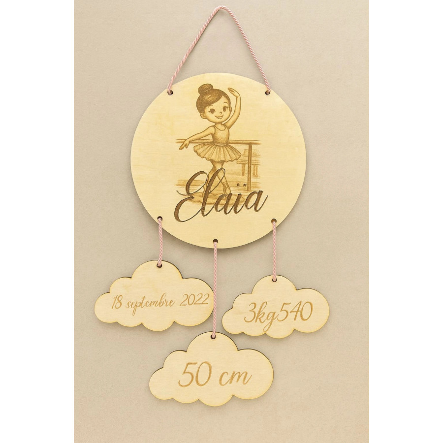 Chaque plaque est gravée au laser sur du bois de bouleau de qualité et personnalisée avec un prénom en acrylique 3D premium, pour un rendu délicat et raffiné.